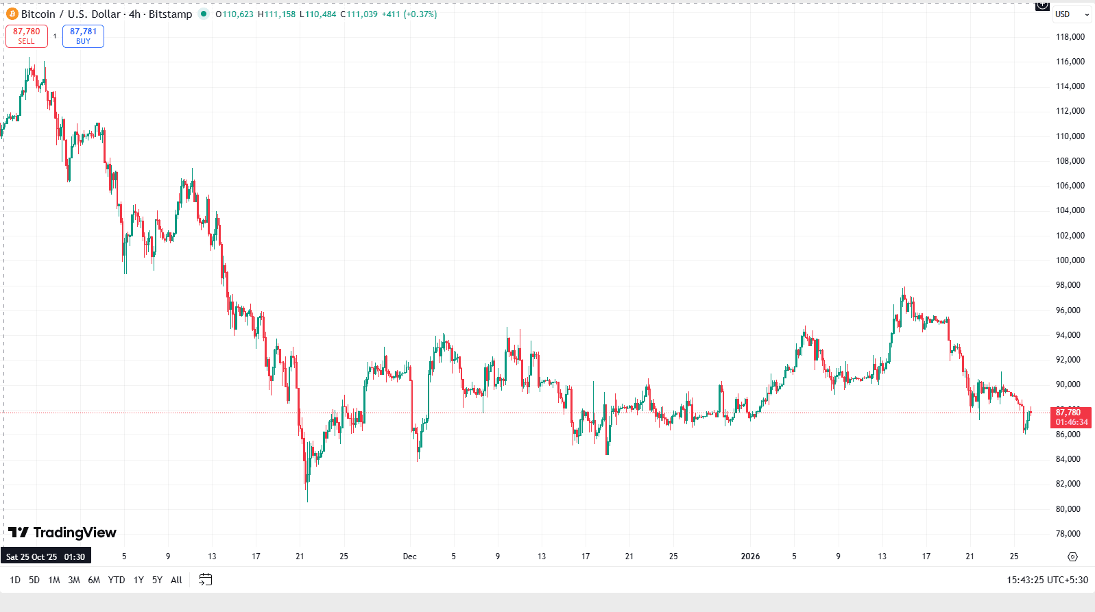 The break below $88,000 confirms the bearish momentum that has dominated recent trading. Traders are watching whether Bitcoin can stabilize at current levels or if further declines toward $85,000 are ahead.