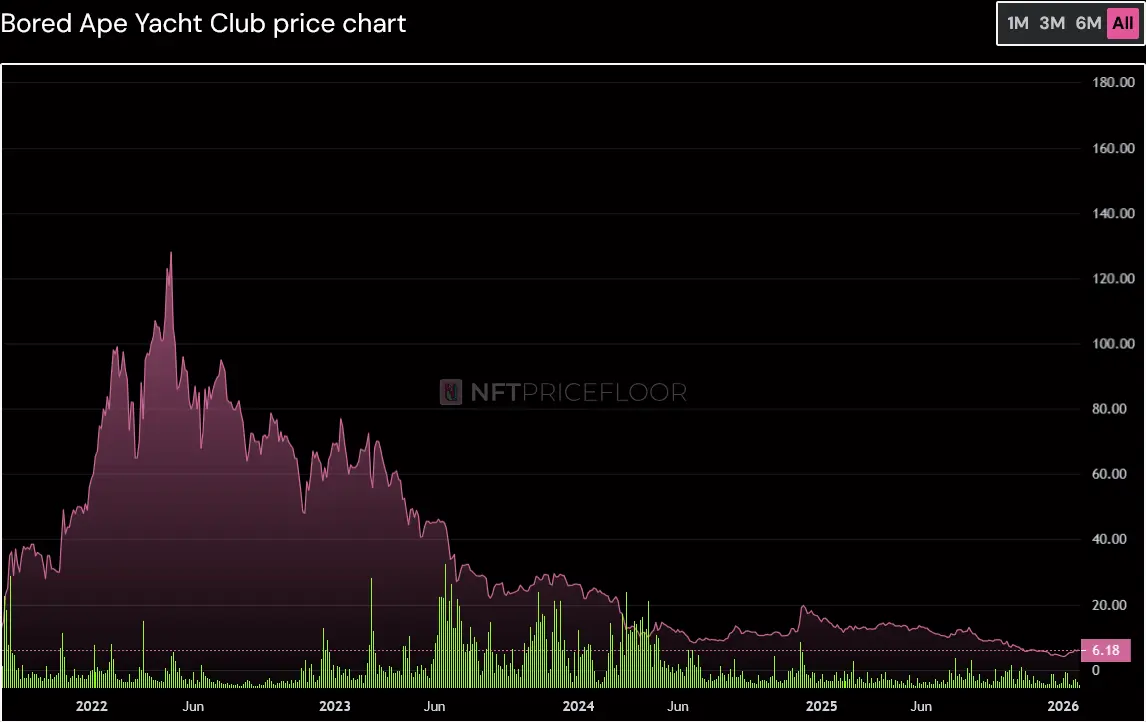 Blue-chip collections got hammered too. Bored Ape Yacht Club, CryptoPunks, and Pudgy Penguins all saw floor prices drop between 12% and 28% in December 2025 alone. The art segment specifically traded down 28% quarter-over-quarter in Q4, settling at $1.25 billion.