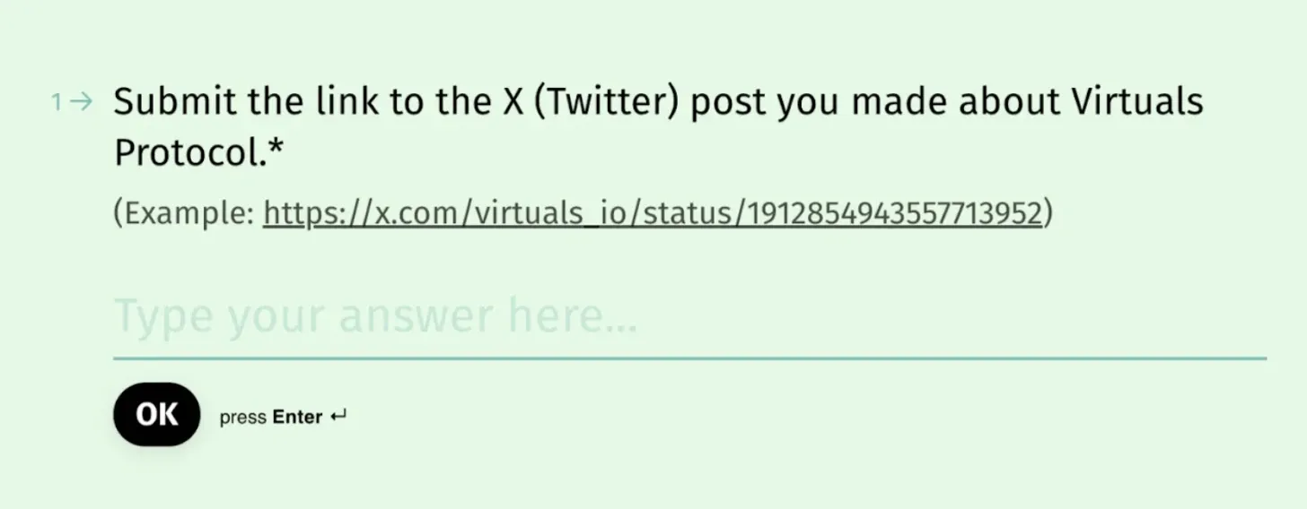 - Create a Post on X: Share your thoughts, insights, or creative content about Virtuals Protocol. This could be a detailed thread, a meme, or a video.